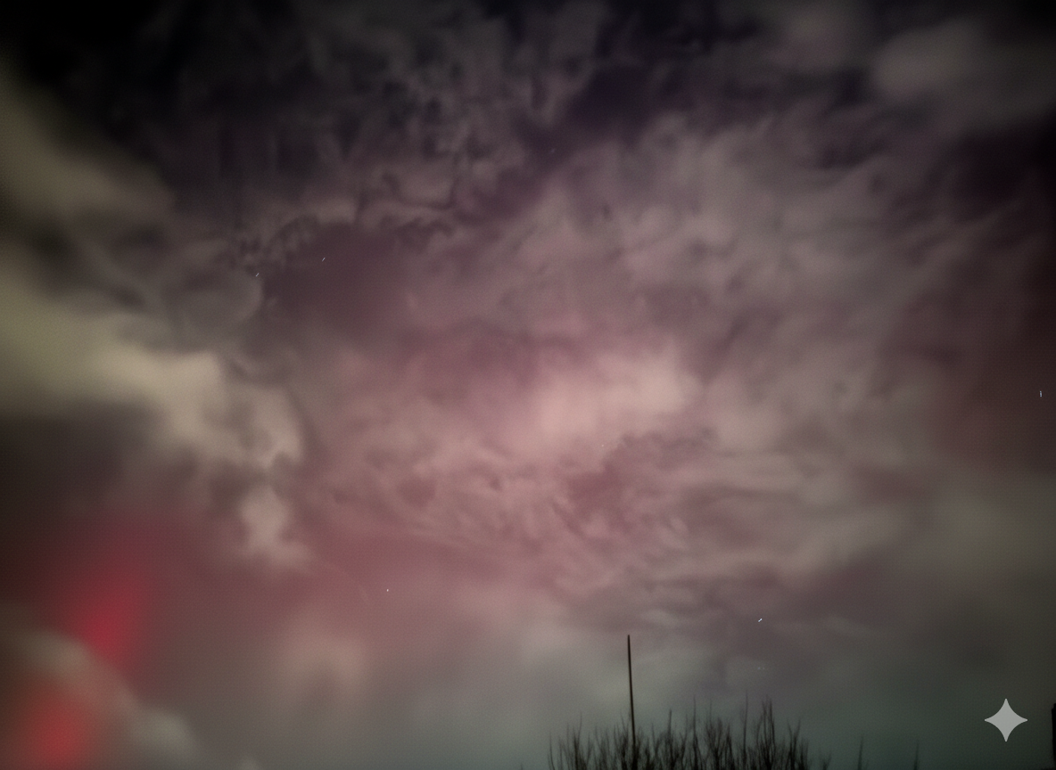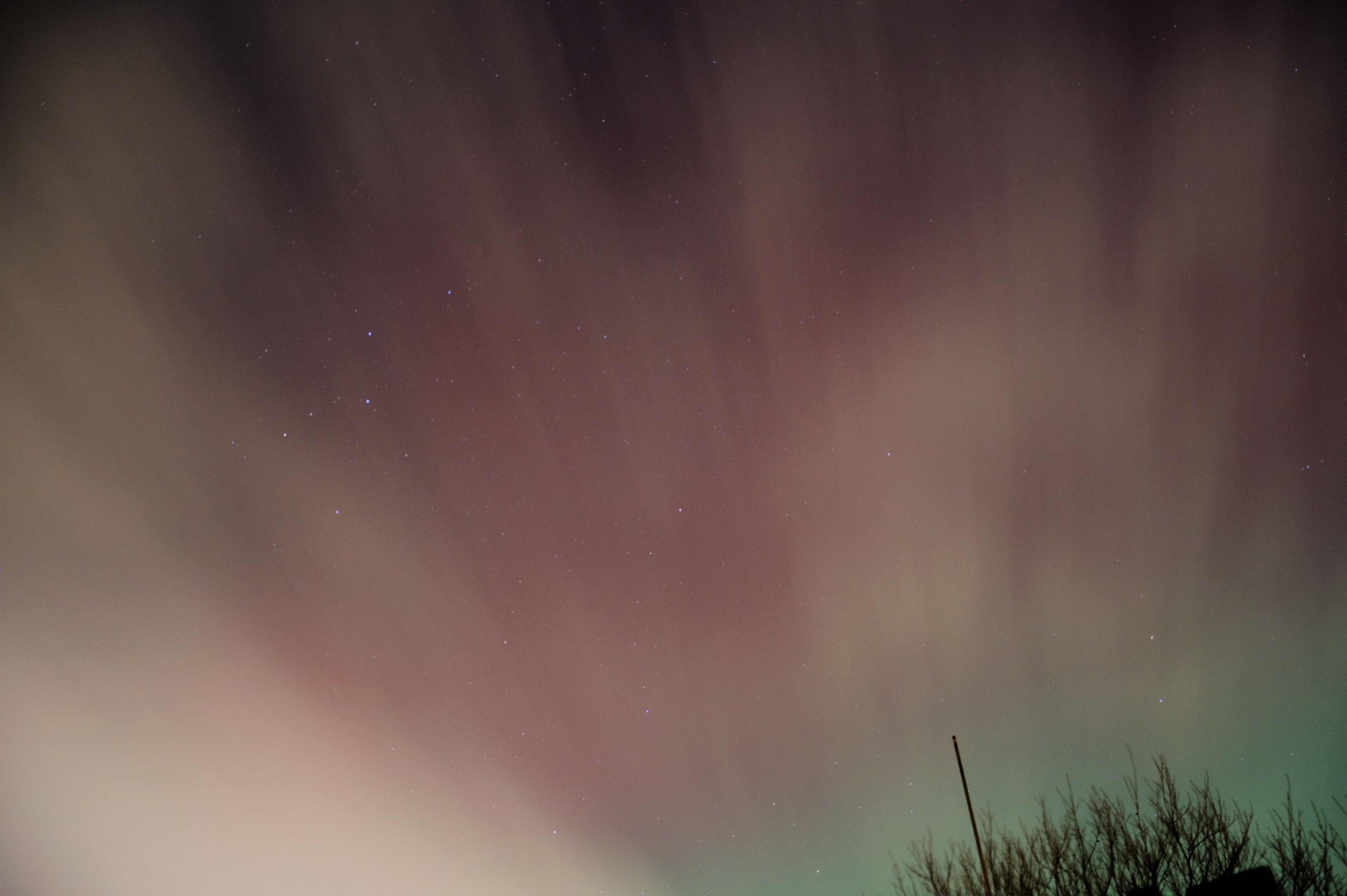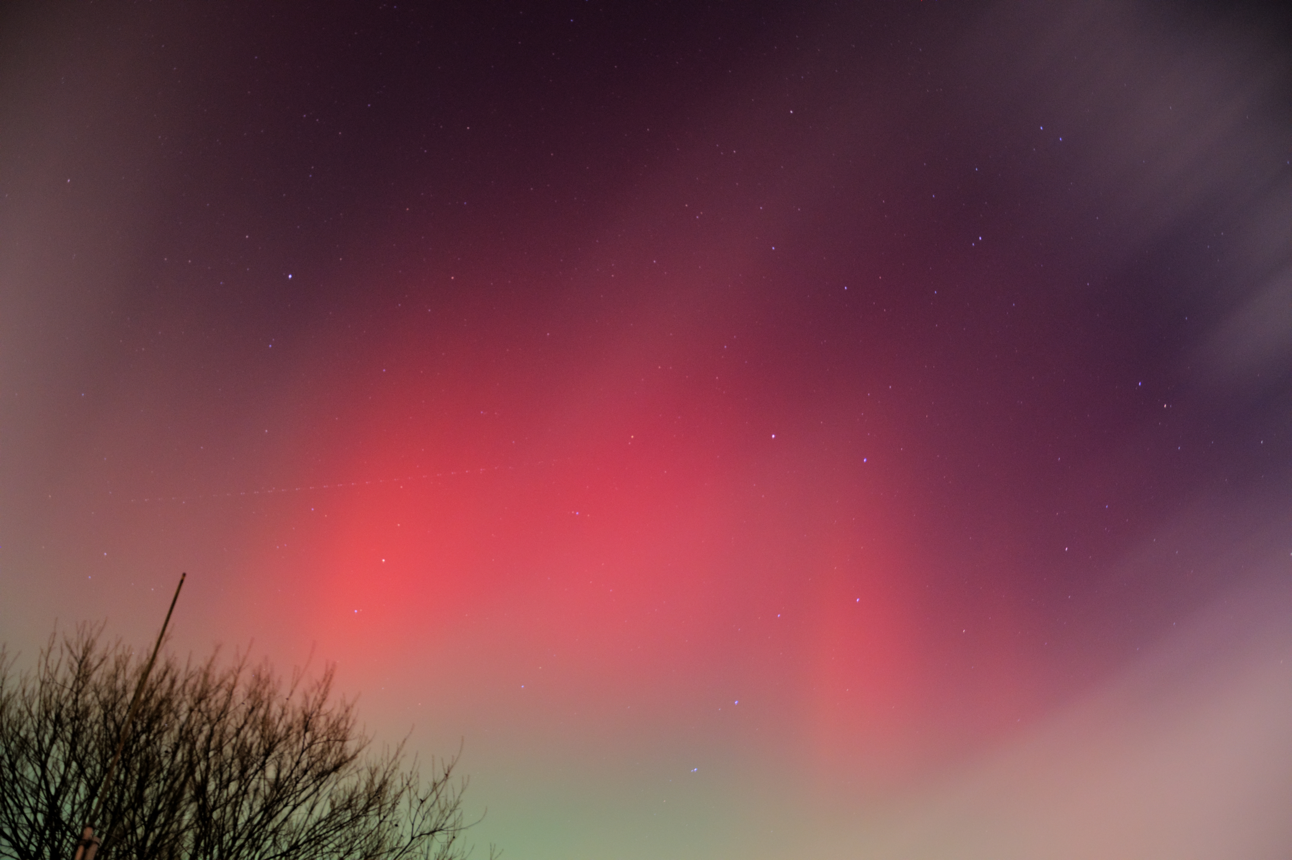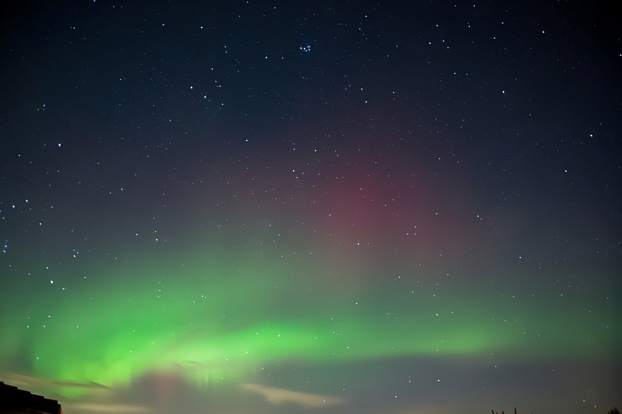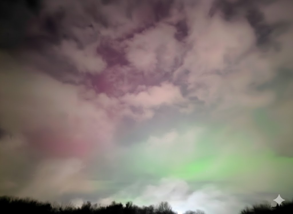 16-Apr-2025 22:10 Aurora Visible A brief bit of a purple in the Northern sky