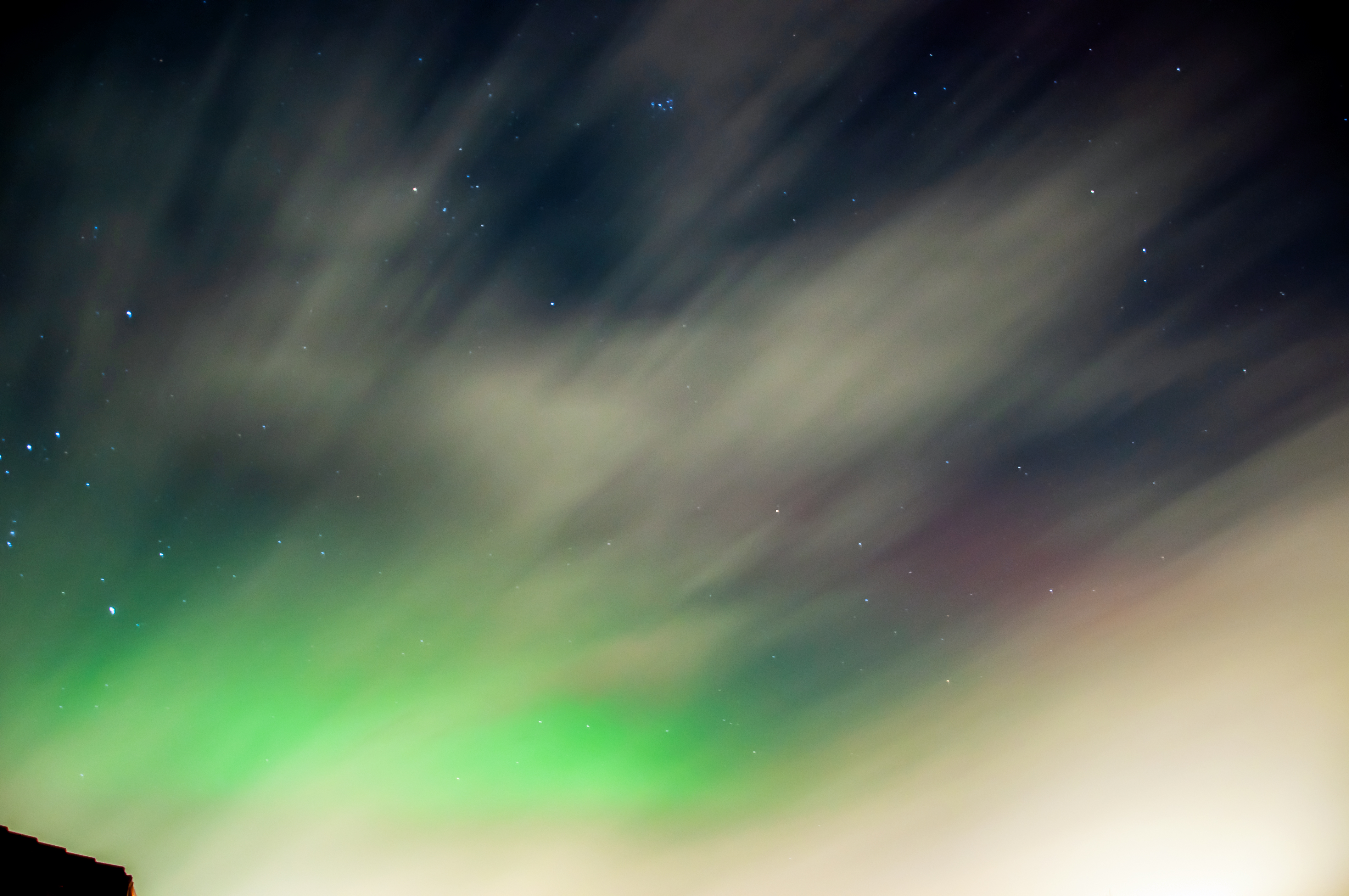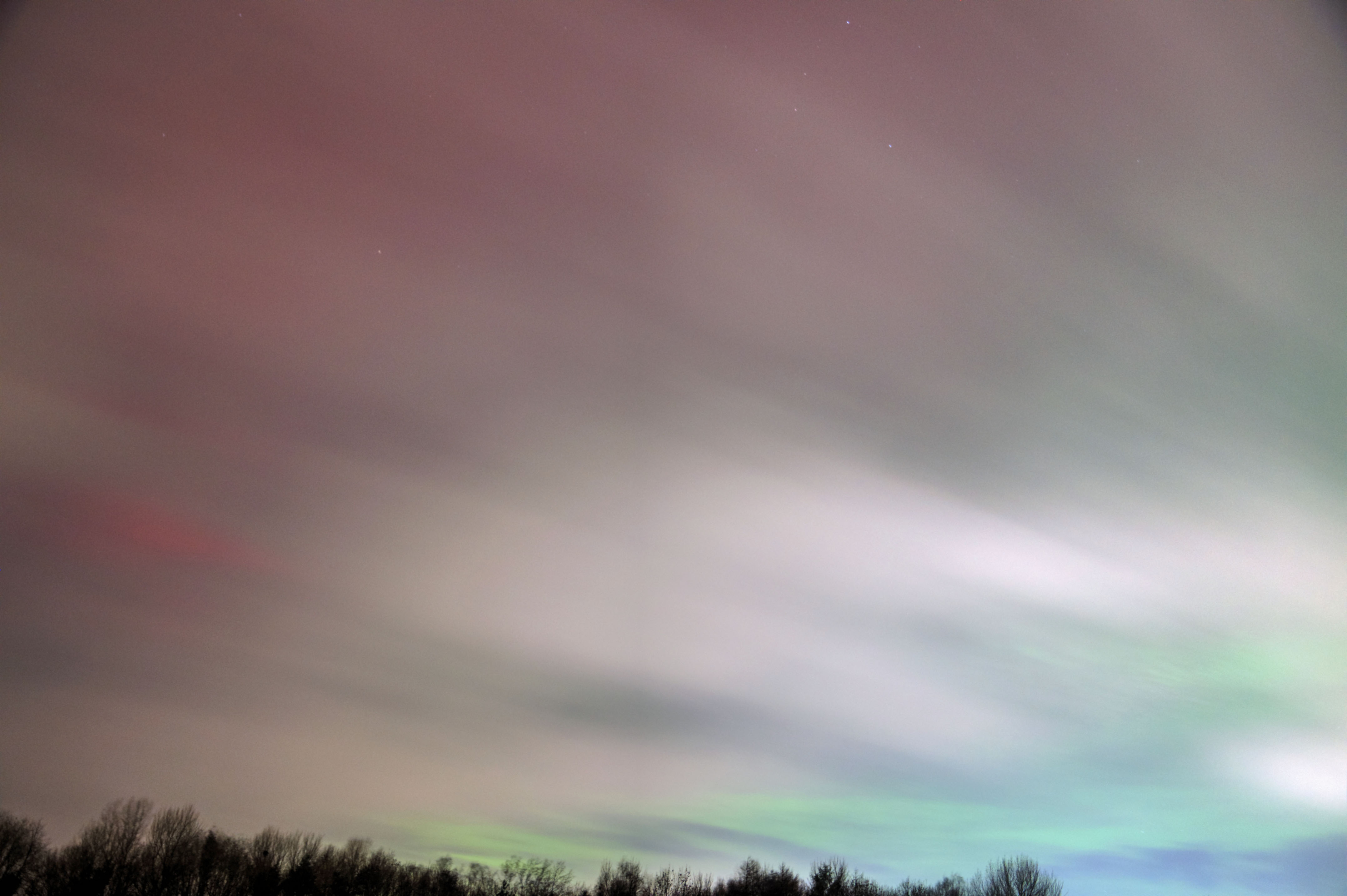 16-Apr-2025 22:10 Aurora Visible A brief bit of a purple in the Northern sky